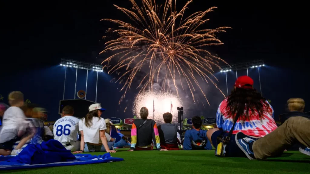 外野フェンスには特大の星条旗が掲げられ、フィールド上には赤・白・青のラインがライト演出によって投影される。スタンドでは観客が配布された小型国旗を振り、波のような“USAウェーブ”が球場を包む。特にナイトゲームでは、スタジアムの照明を活かしたイルミネーションが独立記念日らしさを引き立てる。