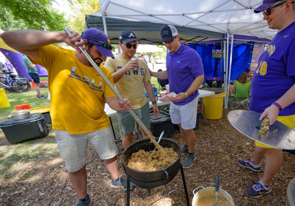 学生やOBが中心となり、学園祭のような一体感が広がる。特にLSUでは地元料理ジャンバラヤやガンボを振る舞う伝統がある。